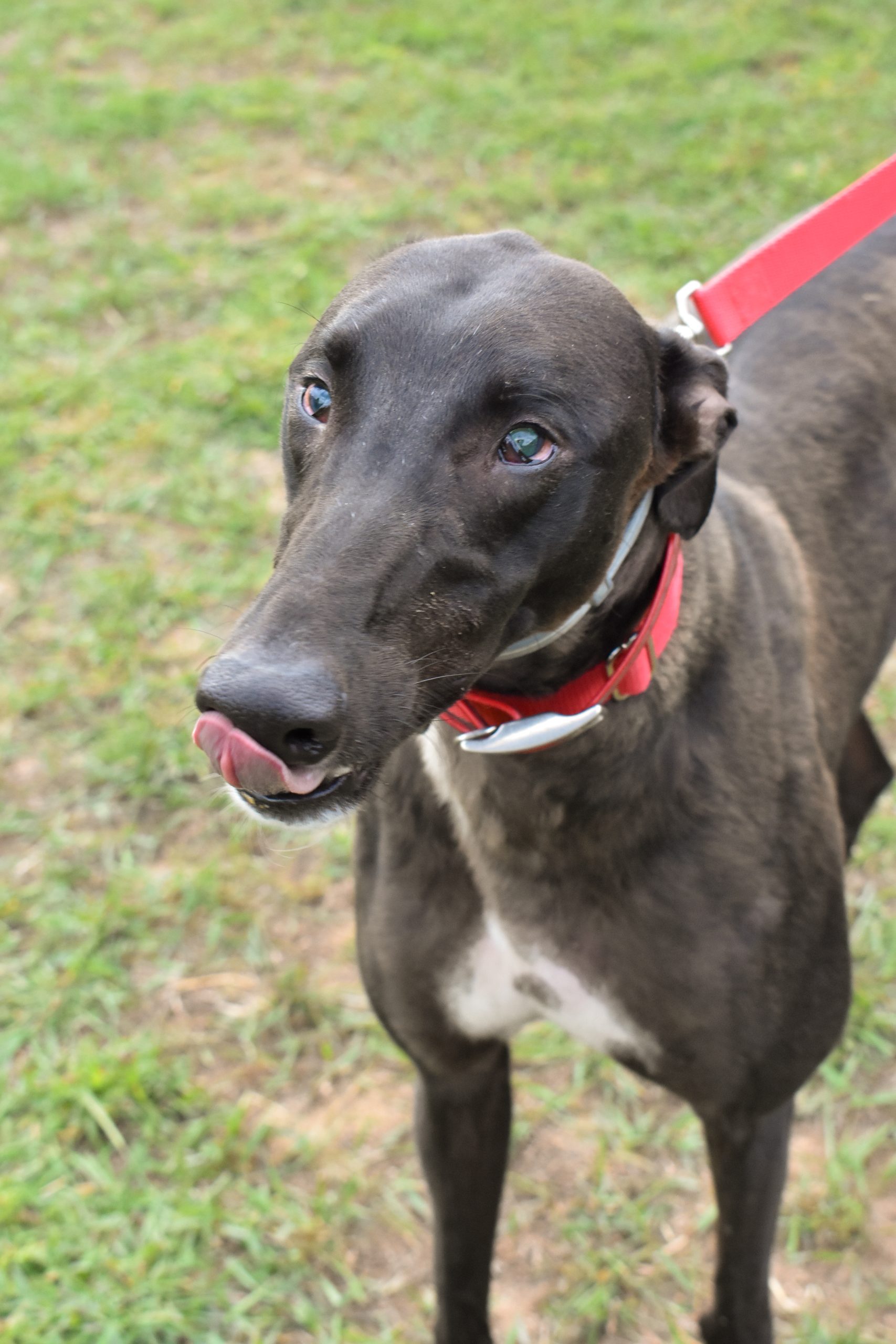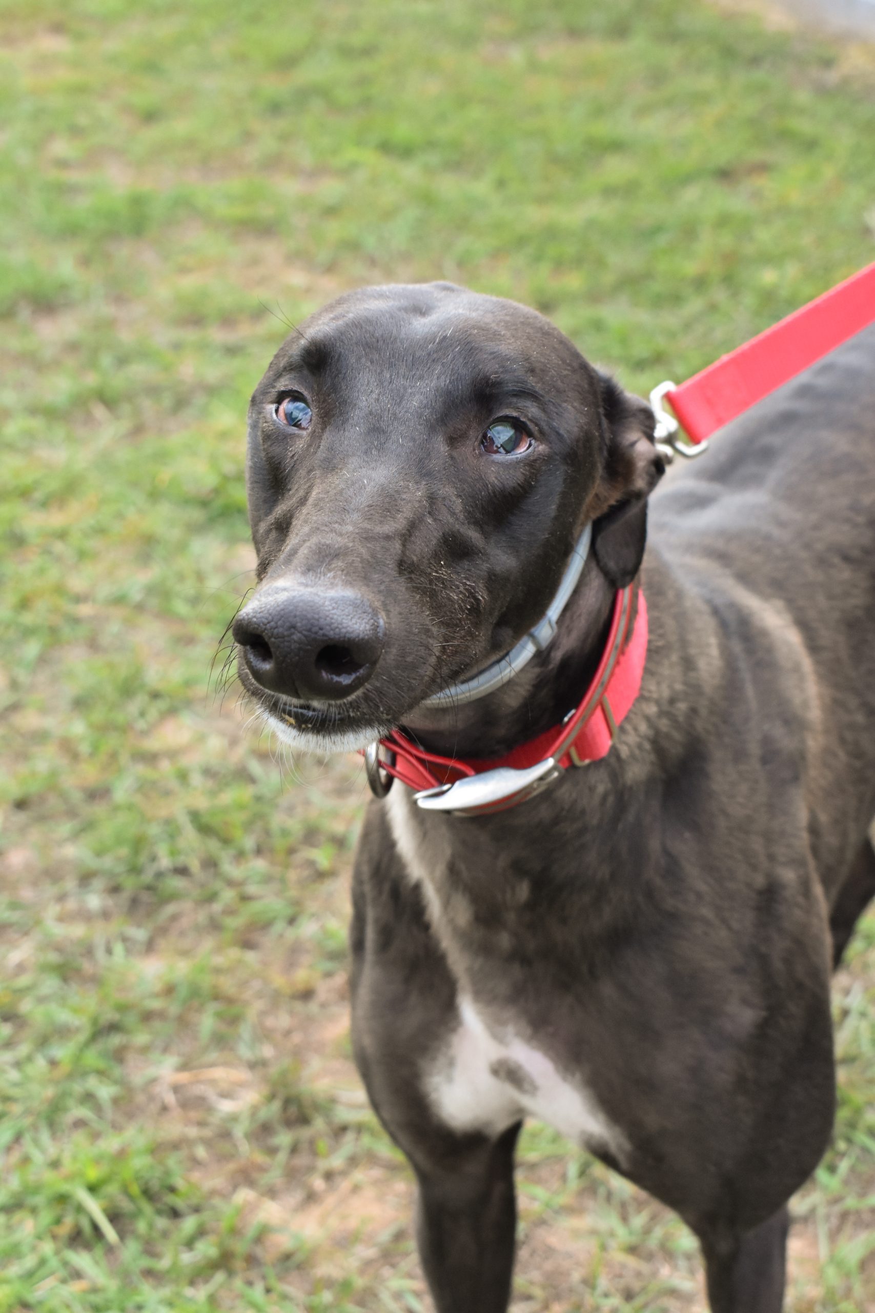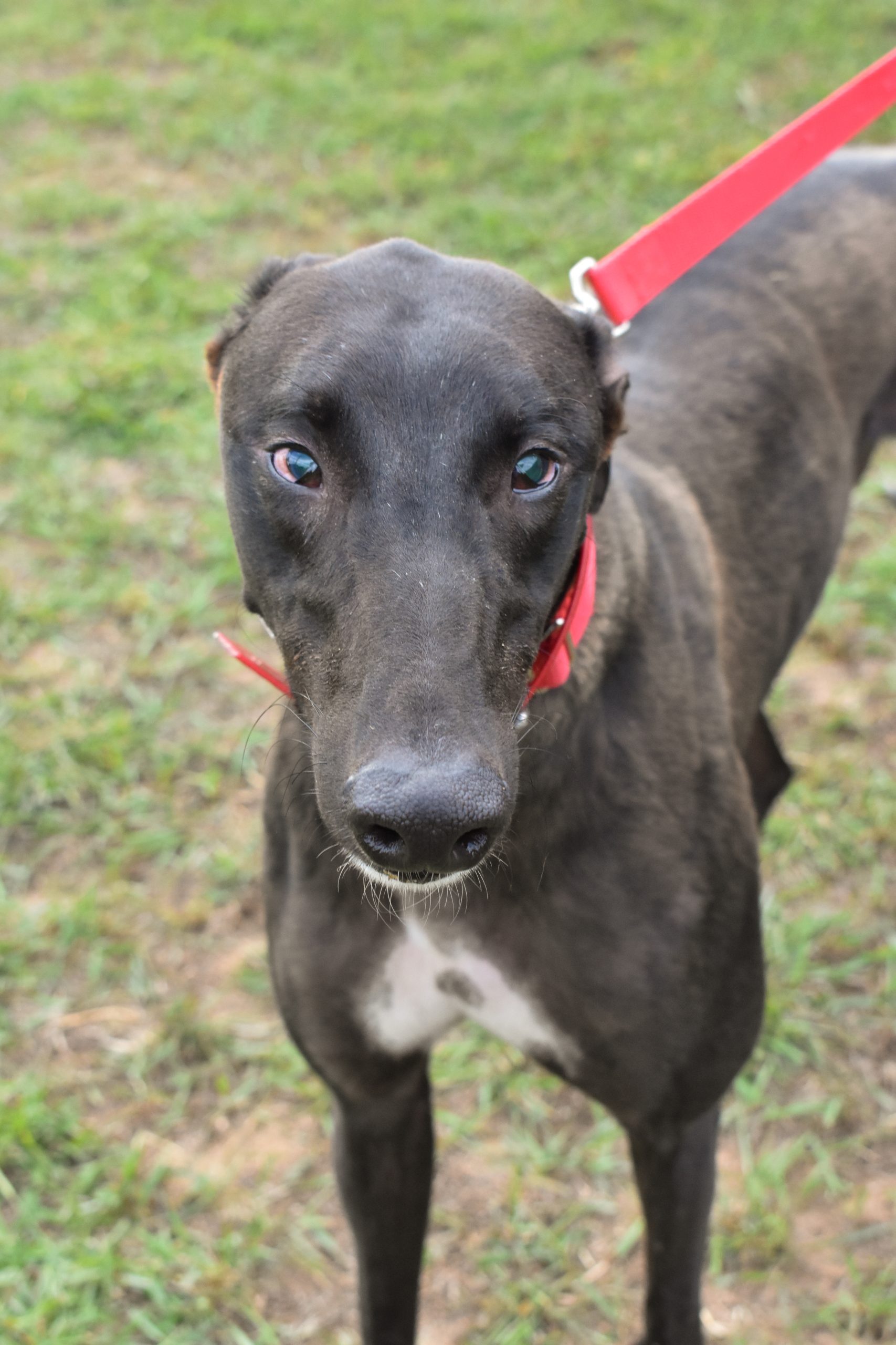 Momba is a sweet young boy who doesn’t act his age. His eyes didn’t develop properly after birth and he cannot see properly. He can track movements and follow things decently well, but he will still bump into objects and likes to rub against other dogs to help guide him around. Momba will need another dog in the house to help him navigate his world and is a very happy friend to all.
