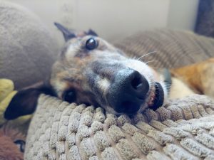Lela enjoys running along the fence line with the neighbor’s dog, and she loves zooming around the yard and taking naps in the sunshine. She gets very excited when she spots squirrels and bunnies outside and would love to chase them down. She can be sneaky about doorways and will slip through an opening if given the opportunity, so careful attention should be paid when entering and exiting the home.