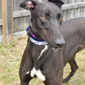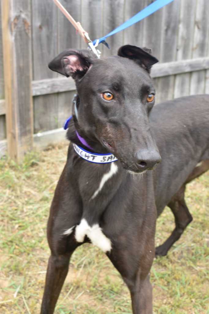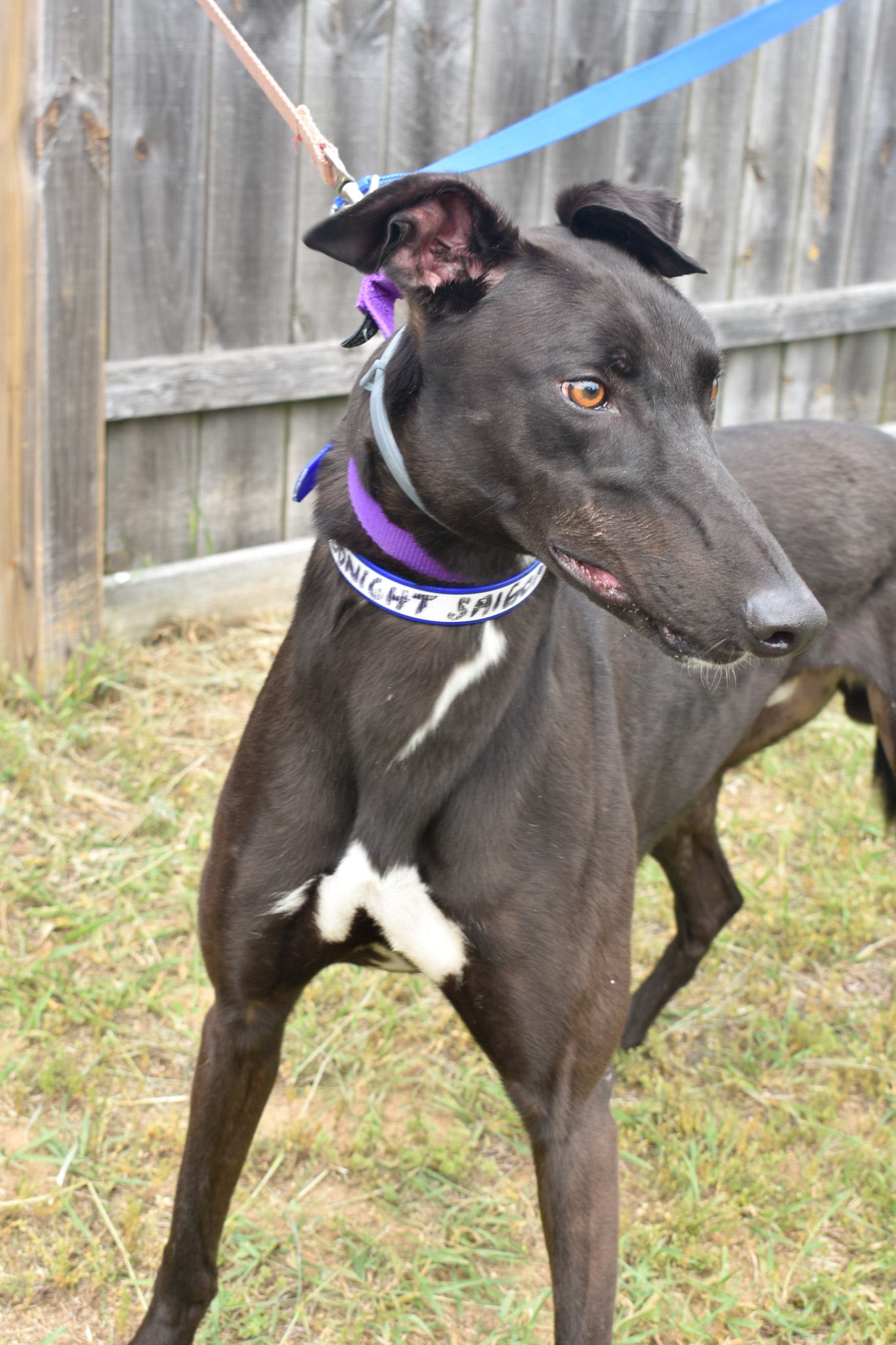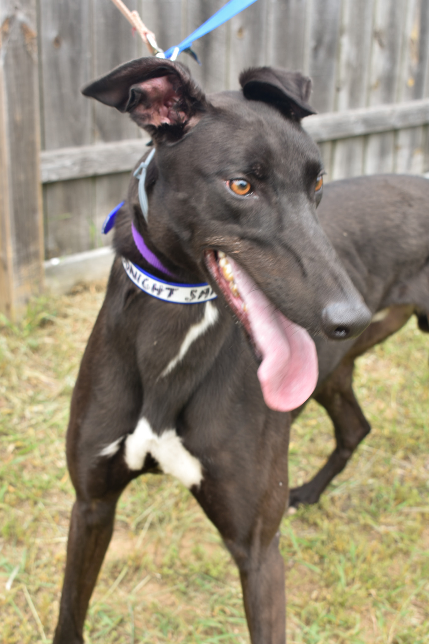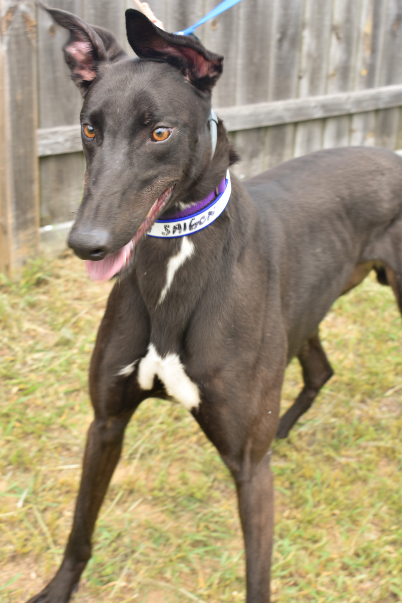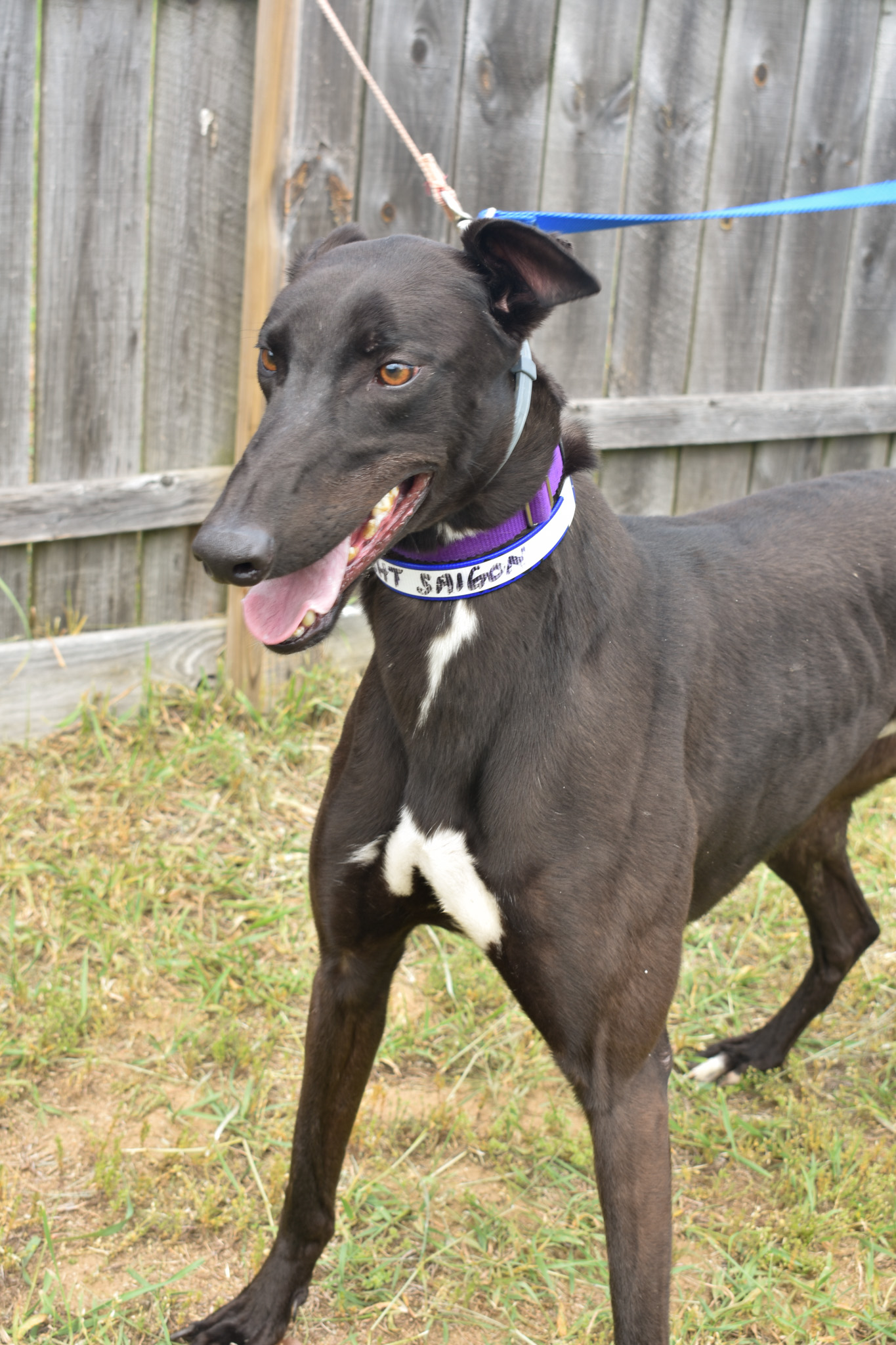 This young boy did not race so he’s not even two yet! He has bubbly energy but gets along with everyone and is a friendly, confident hound. Is Saigon the guy for you?