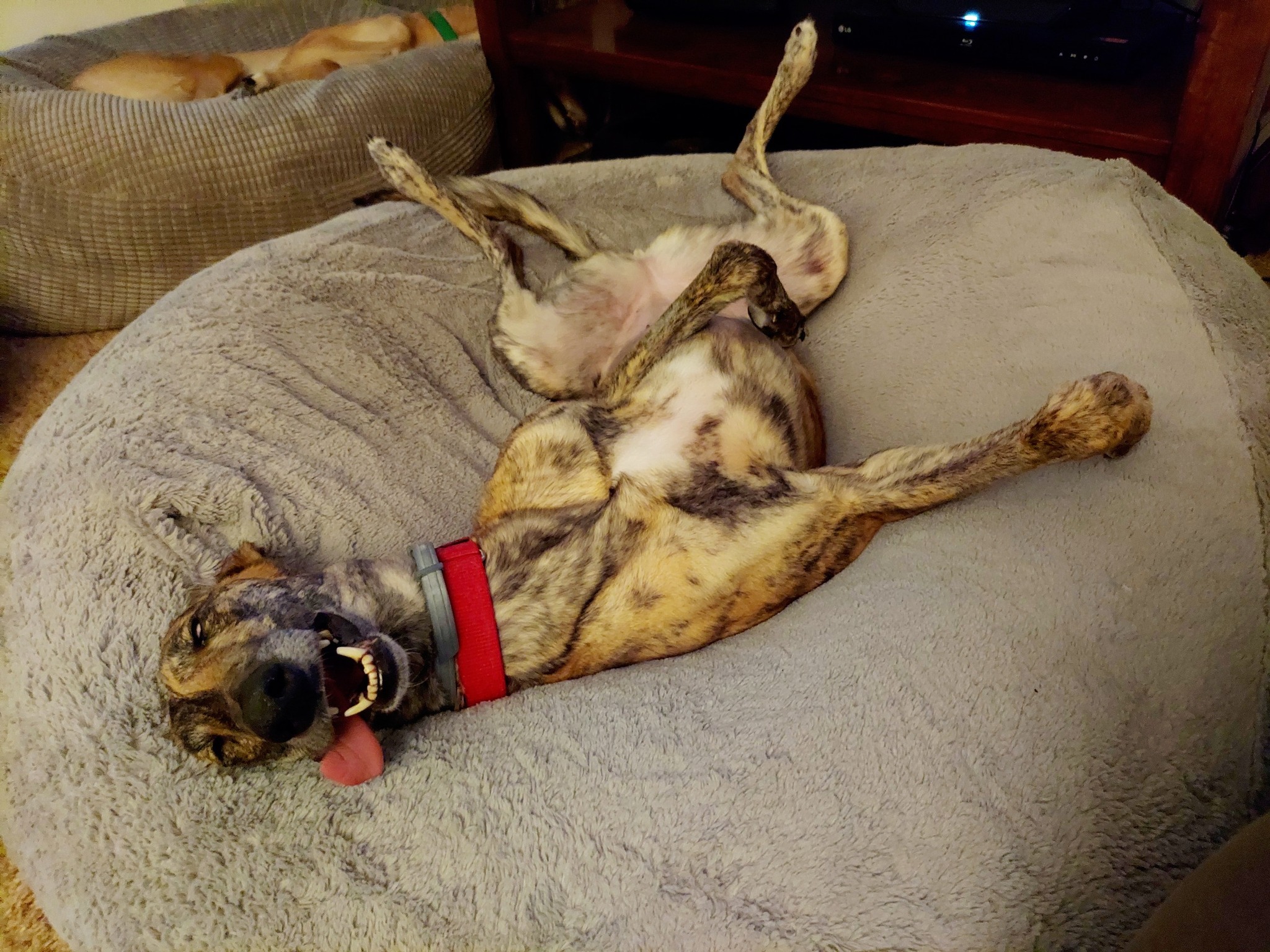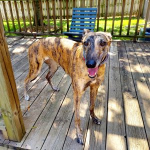 So far, Star has been quick to figure out household routines, and she has been good about following cues from her fellow greyhounds and her foster mom. She’s ready to bring her fun sparkling personality to her forever home! Are you ready to let this Star light up your world?
