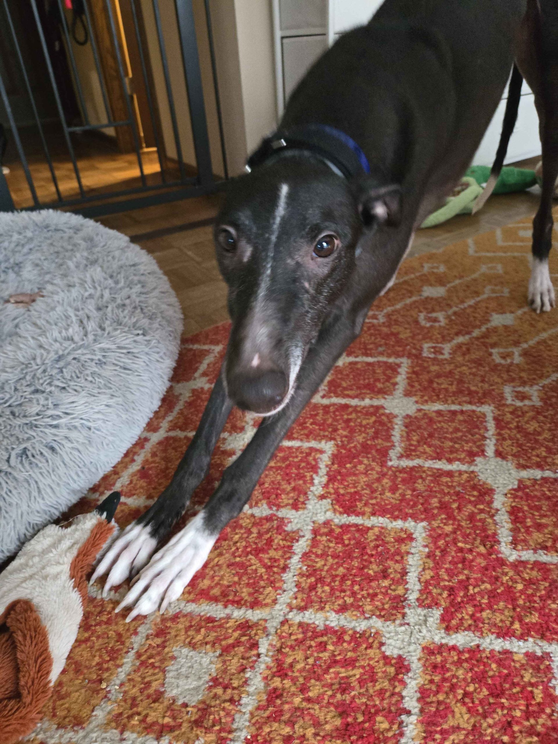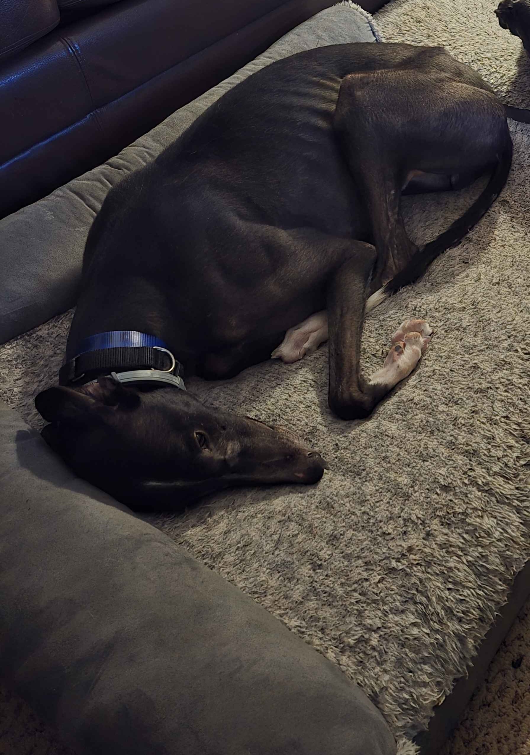 Aaron participated in 144 races, but now, he’s mostly ready to retire. His foster sister will try and get him to race, and he’ll run for a little while, but he’s done pretty quickly; “Why be outside when I could be inside where the food and snuggles are?”
