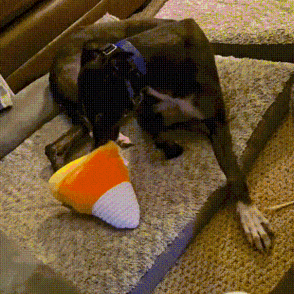 Aaron is still learning about toys. He’s very fond of food puzzle toys, chewing toys, and prefers the crinkle over the squeakers. He’ll sit with a lick mat for hours, long after all the food is gone.